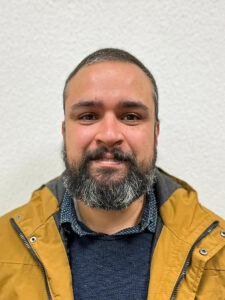 Retrato de Fillipe Rocha, Analista de Marketing da Antares Acoplamentos, especialista em marketing B2B, inbound, SEO e Indústria 4.0, usando jaqueta amarela e camisa azul, em frente a fundo branco.