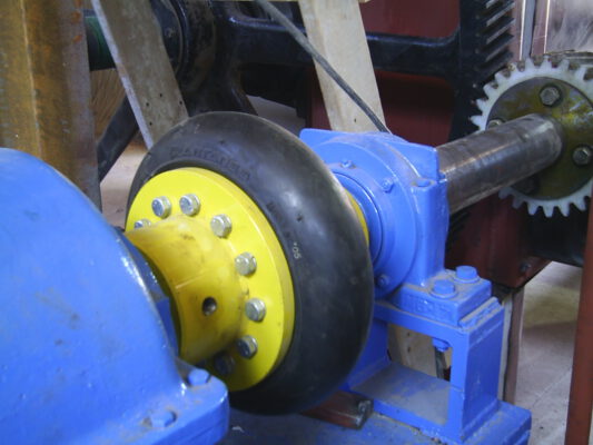 O acoplamento flexível – também chamado de acoplamento de pneu– é o responsável por unir dois eixos que precisam de uma transmissão de torque e rotação.