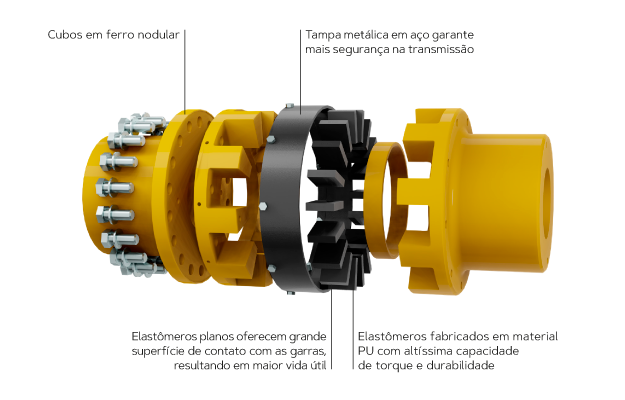 - Mínima deformação dos elastômeros → Mesmo sob carga extrema.