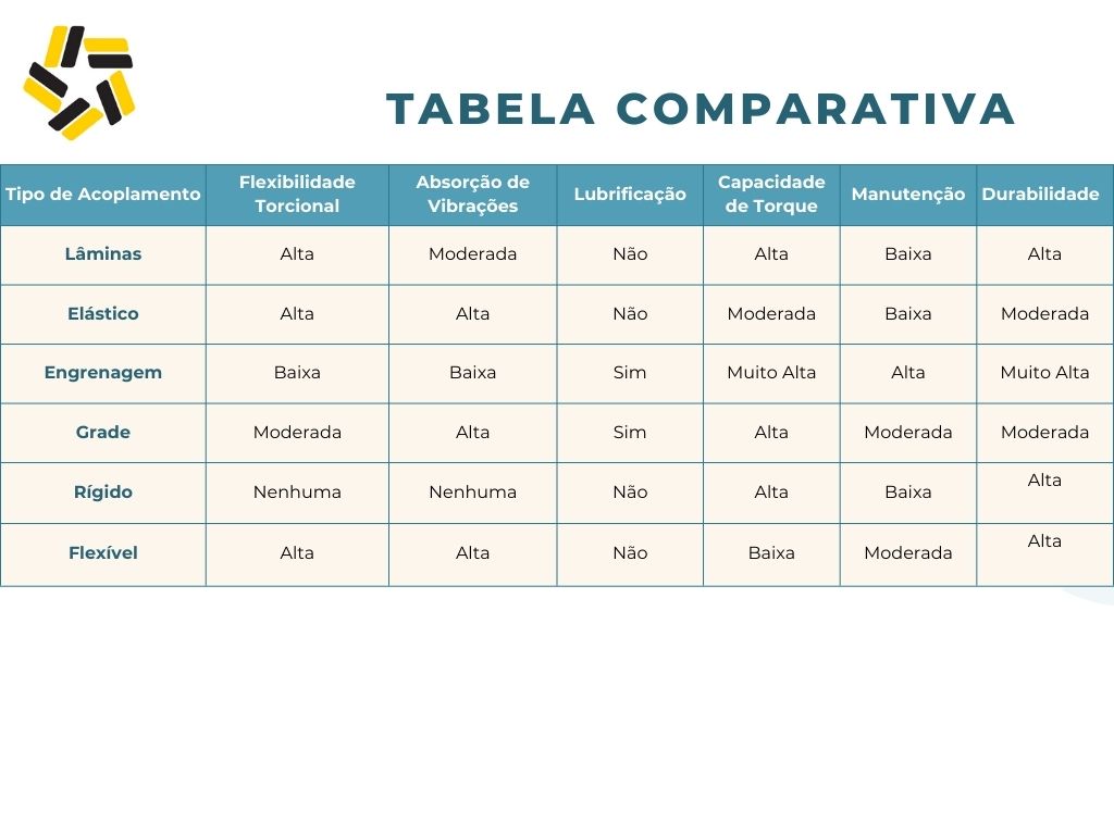 – Rígidos: São menos flexíveis em termos de absorção de choques e vibrações em comparação com os acoplamentos de lâminas e elásticos.