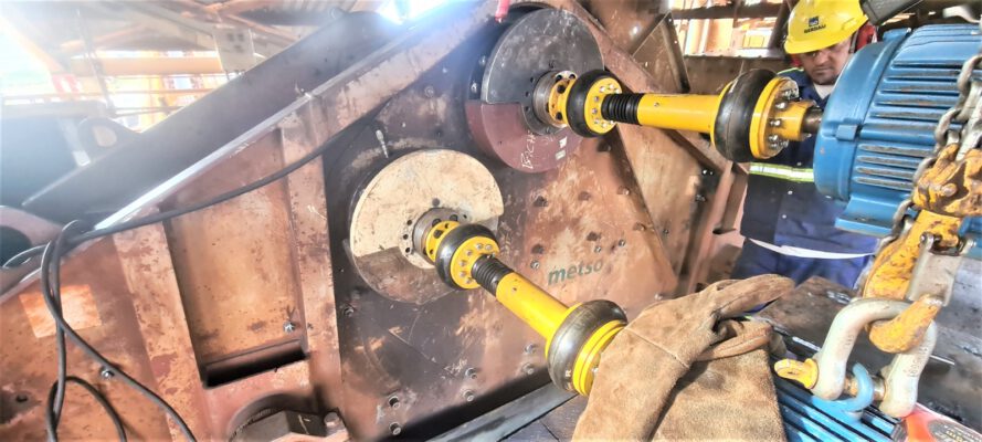 A mineradora chegou a ter 14 quebras do eixo cardan durante o período de um ano. Foram 32 horas em paradas de máquina. Sendo assim, a ANTARES desenvolveu um acoplamento da linha AT especialmente para essa aplicação, o ACOPLAMENTO COM EIXO FLUTUANTE AT-EF.